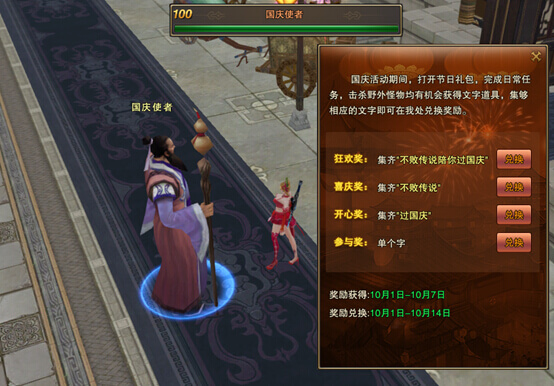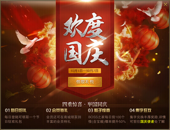 1、抽奖活动时间为:9月26日—9月27日 ;10月1日—10月7日。 2、活动期间,全服60级以上的玩家,每日登陆游戏即可获得1次抽奖机会;每日还可通过以下途径获得额外的抽奖机会: ◇ 每日功勋值达到500,可以额外获得1次抽奖机会; ◇ 每日功勋值达到1200,可以额外再获得1次抽奖机会; 特别说明:由于数据存储的原因,可能出现满足登陆或者功勋条件后,抽奖次数未能及时更新增加;若如此,请退出或重启游戏再耐心等候5~20分钟至次数增加,再进行抽奖。 3、每个角色每天最多可获得3次抽奖机会。当天剩余的抽奖次数在第二天0点清零,建议当天就将所有抽奖次数抽完,以免损失。 4、所有游戏道具或物品奖励均为绑定,且在抽中之后随即发放。中奖的玩家登陆游戏即可收取奖励;若收取不到奖励,请小退后再收取。 5、抽中30元和100元话费奖励的玩家朋友,请正确填写要充值的手机号码,如因填写有误而造成损失,由玩家承担。话费奖励将在活动结束后7个工作日内完成发放; 6、如有疑问,请联系官方客服(客服QQ:2628343129)或到官方论坛(点我前往论坛)发帖咨询。