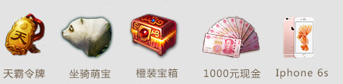 活动时间内,击败地狱裁决、天霸等BOSS将有可能掉落Iphone6s等实物奖励的碎片,