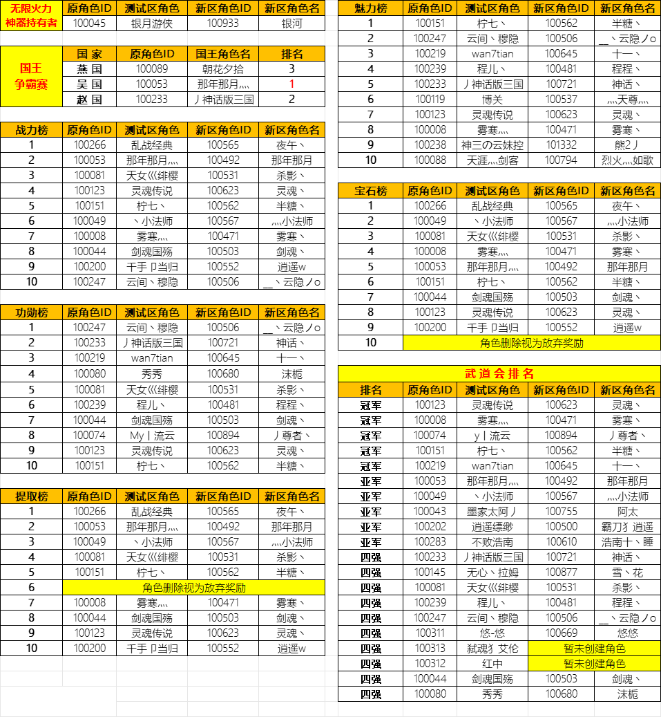 感谢各位老铁们在【博关经典】区测试期间(8月底到9月中旬)付出的努力和支持,同时我们也收到了来自测试期间特别多的建议和意见,让我们有足够的时间完善游戏并在9月实现首个不删档大区【天尊】的开启!现将名单公示,本次奖励名单将于9月30日发放,如有疑问请主动联系客服QQ:2628343129