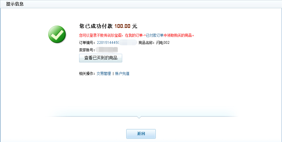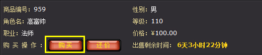 确认购买该角色,则点击商品信息上的"购买"按钮(如果卖家支持"还价",则可以发送站内信给卖家再商议价格;如果没有该按钮,则说明该商品卖家不允许还价):